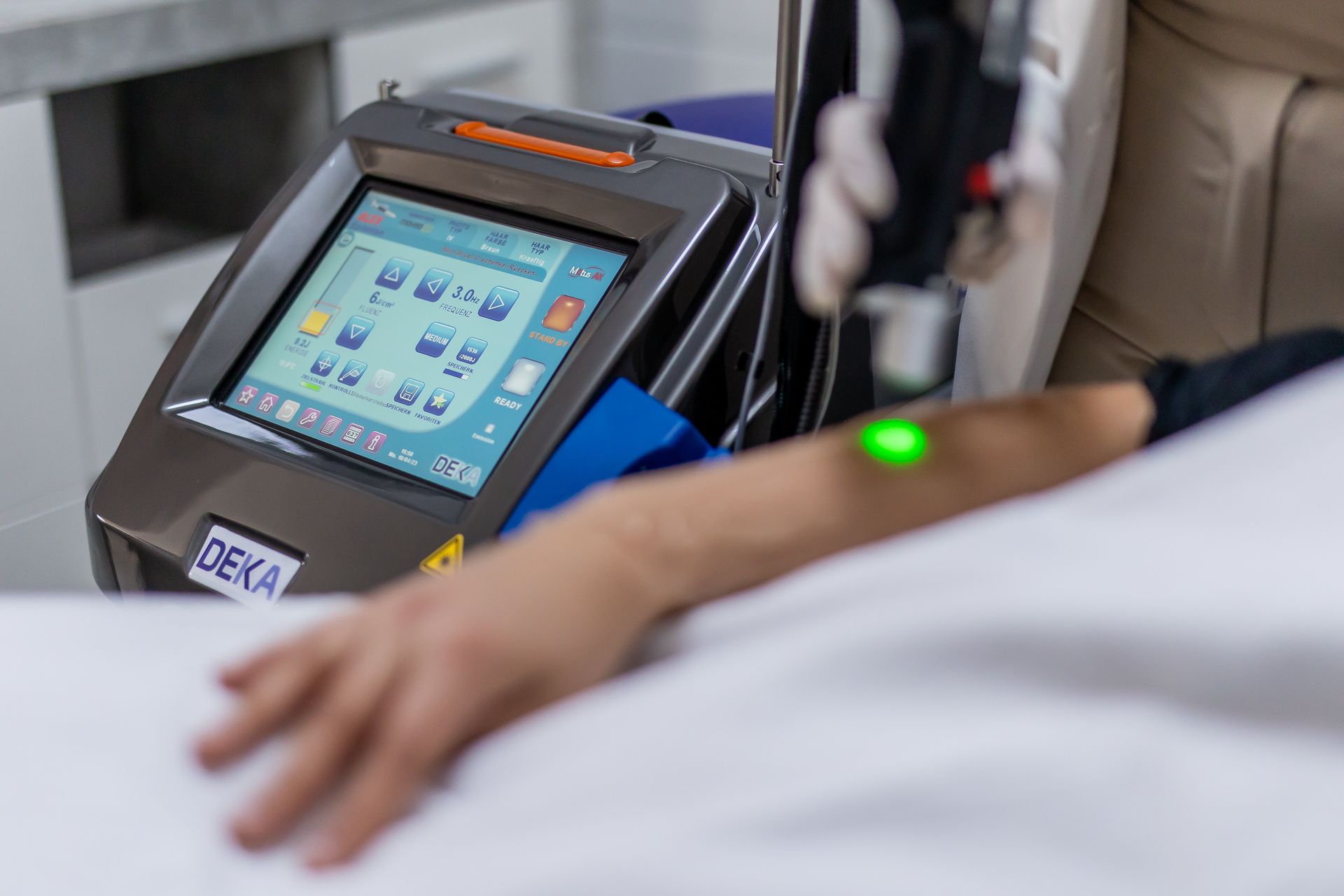 Wir arbeiten mit den neuesten Geräten von Asclepion und DEKA – führend in Wirksamkeit, Hautschonung und Präzision.Endlich nahezu schmerzfrei, auch an empfindlichen Körperzonen.